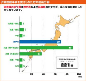 患者様の約7割は神戸市および兵庫県の方ですが、広く全国各地からも来られています。