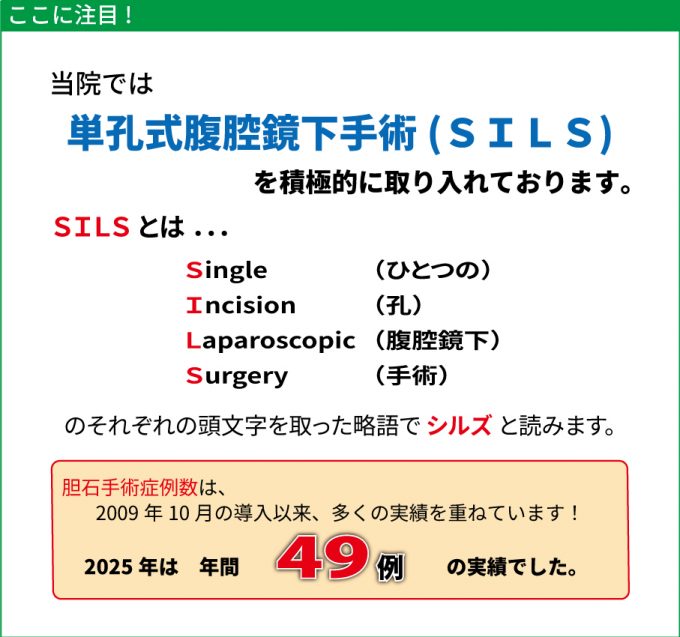 胆石手術症例数は、2009年10月の導入以来、多くの実績を重ねており、2025年は年間49症例の実績でした。
