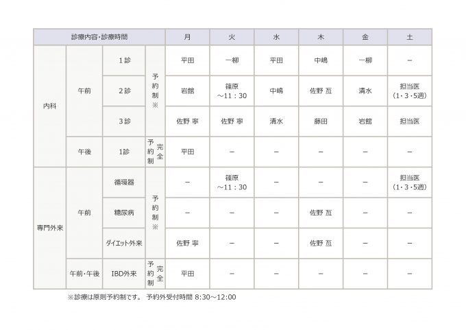 診療体制表