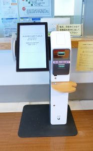 - 「再来受付機」に診察券を入れて画面の案内に従って操作して下さい。